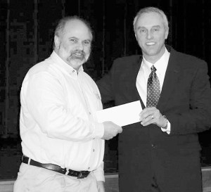 Central Maine Federal Credit Union recently held its 58th annual meeting at St. Dominic Regional High School in Auburn. After the business meeting, a $1,000 donation was presented to the Greater Androscoggin Humane Society, located at 55 Strawberry Ave., Lewiston. Rene Morin, right, Central Maine Credit Union’s board chairman, presented the donation to Steven Dostie, left, executive director of the humane society.