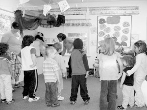 Children, families and staff from the Early Learning Center of Pathways Inc. in Auburn were recently visited by storyteller Jody Fein of Gray. Fein engaged the children in songs, finger-plays and stories provided by a grant from the Maine Arts Commission, Early stARTS program. Children enjoyed active and listening activities and Fein donated books for the classroom library. The Early Learning Center offers specially designed instruction for preschoolers and toddlers, age 18 months to 5 years. For more information, call 795-4092 or visit www.pathwaysmaine.com.