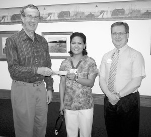 PARIS — Philip DuBois, administrator of Market Square Health Care Center, has announced that Cristina Dingley, LPN, was the 2009 recipient of the Gladys Stewart Book Scholarship. Dingley was also a caregiver for Gladys Stewart and was presented with her scholarship check by Henry Stewart, Gladys’ son, on June 29.