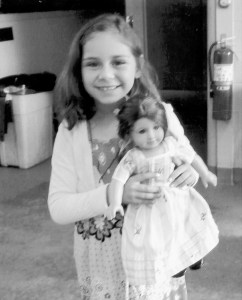 Hadley Green shows off Felicity, her American Girl doll, at an American Girl tea party recently. The event was held at the Mexico Public Library.