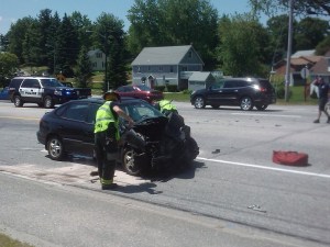 At 11:44 a.m. police say 21-year-old Shawn Pelletier and Steven Harris, both of Lewiston, were racing on Center Street in Auburn when Harris’ Honda Civic collided with a Hyundai that was exiting the Pep-Boys parking lot. The driver of the Hyundai, 31-year-old Michael Dozois of Lewiston, had to be extricated from the vehicle by Auburn firefighters.