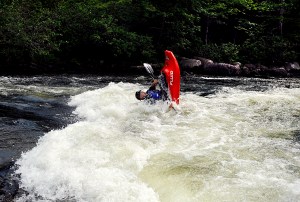 French takes a few long, Australian-crawl swim strokes, pulling his head up once to look at the churning rapid below. He gives one strong scissors-kick, sliding head-first into the full force of the river’s current, arms forward, belly down like an otter.