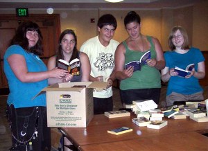 Auburn Public Library will hold the summer paperback book sale from 9 a.m. to 1 p.m. Saturday, Aug. 21, at the library. Paperback books will be 50 cents or three for $1. Trade paperbacks will be $1. The library is seeking paperback book donations, which may be dropped off at the library during regular business hours. Teen volunteers at the library are helping to sort donated paperbacks. From left are Jasmine Dyment, Portia Lothrup, Travis Burnham, Jen Allen and summer library student intern, Nancy O’Toole. For more information, contact Jim Wilkins, director of development, at [email protected] or 333-6640, ext. 2023.