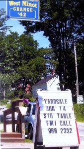 The West Minot Grange 42 will have its annual area yard sale from 8 a.m. to 2 p.m. Saturday, Aug. 14. Eight-foot table spaces are available for a $10 donation and folks will be able to set up Friday evening or early Saturday morning. Call 966-2332 to reserve a table. Pat Hutter and her associates will bring a large selection of special baskets and there will be homemade baked goods, cookies, whoopie pies, doughnuts, brown bread, two kinds of baked beans, hot dogs and coleslaw. All are welcome to attend.