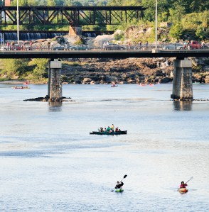 During the launch, the balloons seemed to stagger their lifts, making watching extra enjoyable. One pilot showed off by dipping his basket into the Androscoggin River. Crowds watched not only from the parks on both sides of the river, but from the bridge, from windows and rooftops.