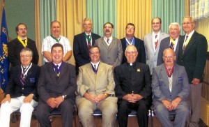 Holy Family Council 10019, Knights of Columbus, Lewiston, recently installed officers for 2010-2011. They are, in front, from left, Raymond Martineau, chancellor; Daniel Ouellette, deputy grand knight; Normand Bisson, grand knight; the Rev. Maurice Morin, chaplain; George Bourgoin, warden; back, Timothy Viens, advocate; Robert Roberge, trustee, third year; Michael Lajoie, trustee, second year; David Gervais, outside guard; Joseph Hebert, outside guard; Almon Jordan, inside guard; Gerald Bouffard, recording secretary; Gerard Poulin, financial secretary; absent from photo, Ronald Landry, treasurer and Francis Brooks, trustee, first year.