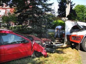 The custom-made, black iron fence could have sustained up to $100,000 in damages from Sunday’s accident, a King employee told police. Nobody was injured.