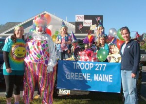 Brownie Troop 277 of Greene participated in the Greene Village Day Parade on Sept. 11. The Troop won “Most Colorful” in the parade. Pictured from left are Christine St. Germaine, Laurie Pelletier (as clown), Jaidyn Negley, Mia Donoghue, Morgan Bilodeau, Abbie Lavoie, Ali Noniewicz and Kristin Bilodeau.