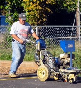 Rick Dionne, owner of Bull Run Striping in Greene, recently donated his time and services to the Monmouth Middle School to stripe the playground. Students and community members began raising money more than four years ago to replace an old, outdated playground. A new playground was finally funded last year, but there was no money left in the budget to stripe the basketball court and four-squares. Dionne offered to do the work as a donation to the school.