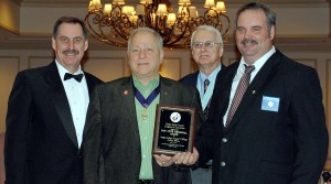 The Andy Valley Knights of Columbus, Council 8742, were the recipients of several awards recognizing their work over the course of the year. Awards were given at the annual State Convention held at the Samoset Resort in Rockland. The Knights were awarded Outstanding Church Activities for three projects, including bringing the Real Presence Vatican Exhibit to Maine, the Knights Before Christmas toy drive and a yard sale to purchase a motorized wheel chair for a disabled priest. They also received the Right to Life award, Best Yearbook in Class A and the Ron Cote Award for most unique project, also for the exhibit. Pictured, from left, are Tony Levesque, Surge with Service program director; Past Grand Knight Tom Cremona; Ray Sargent, state deputy; and Grand Knight Neil Marchesseault.