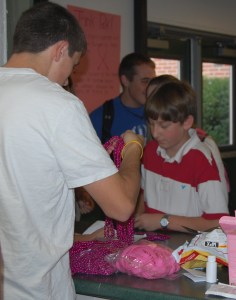 She dyed strips of hair pink while President Lexi Niedner and Treasurer Mike Anctil and other Senate members sold necklaces and bracelets.