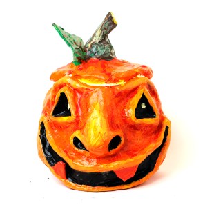 How long since you’ve carved/decorated a pumpkin: Last year my husband and I created paper mache jack-o’-lanterns and spooky cats. We carved one pumpkin and we displayed them all together for the trick-or-treaters.