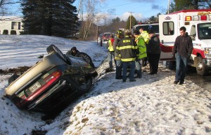 By 5 p.m., the Oxford County Regional Communication Center had received about 25 accident calls from drivers who slid off the roads, Supervisor Steve Cordwell said.