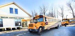 As the school day ended, two Wales School Department buses pulled up. Students climbed on for their ride home.