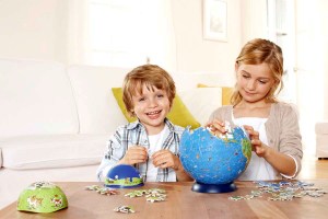 “Puzzleball” is a 3-D puzzle that has curved pieces that fit together to form a globe. Puzzles come in different prices, sizes and difficulties. The 96-piece “Children’s Globe” costs $14.95. Check them out at www.ravensburger.com or Amazon.