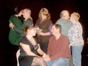 Throughout the production, their love story is shared through a series of flashbacks, fantasy scenes and monologues performed by many actors in as many as 36 roles. Filling these roles are Jim Lattin as Alex, Ron Veno as Chip, Anna Doyle, Cassidy Small, Heidi Holst, Kerstin Schkrioba, Matt Blais and Patty Vieta.