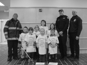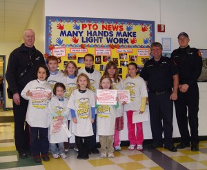 Fairview School fire prevention poster winners in front, from left, are Dimetri Gammaitoni, Jayme Saulnier, Alina Laliberte and Caelan McGuigan; back, Lt. Mike Scott, Ryan Raby, Caroline Hammond, Olivia Jensen, Rachel Stubbs, Emma Allen, Pvt. Jon Woodhead and Pvt. Eric Poland.