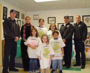 Park Avenue Elementary School poster winners are, front from left, Elijah Fournier, Kira Grigat and Brynne Emond; back, Pvt. Jon Woodhead, Zion Aube, Joshua White, Delaney Morneau, Madison Leighton, Pvt. Eric Poland and Lt. Mike Scott.