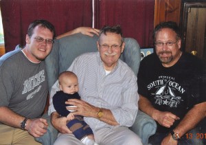 Four Lewiston-Auburn generations are pictured. From left are Ryan David Greene of Lewiston, grandson; great-grandfather, Carlton Greene of Auburn, holding 3-month-old great-grandson, Beckett Ryan Greene; and David Carlton Greene of Lewiston, son.