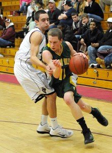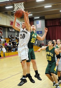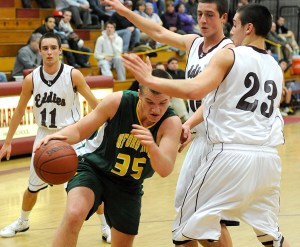 The Vikings used a pair of physical players down low in senior Matt McVety and junior Josh MacDonald at the start of the game, but they weren’t alone. As Leary caught entry passes in the paint, the Viking guards closed in on him.