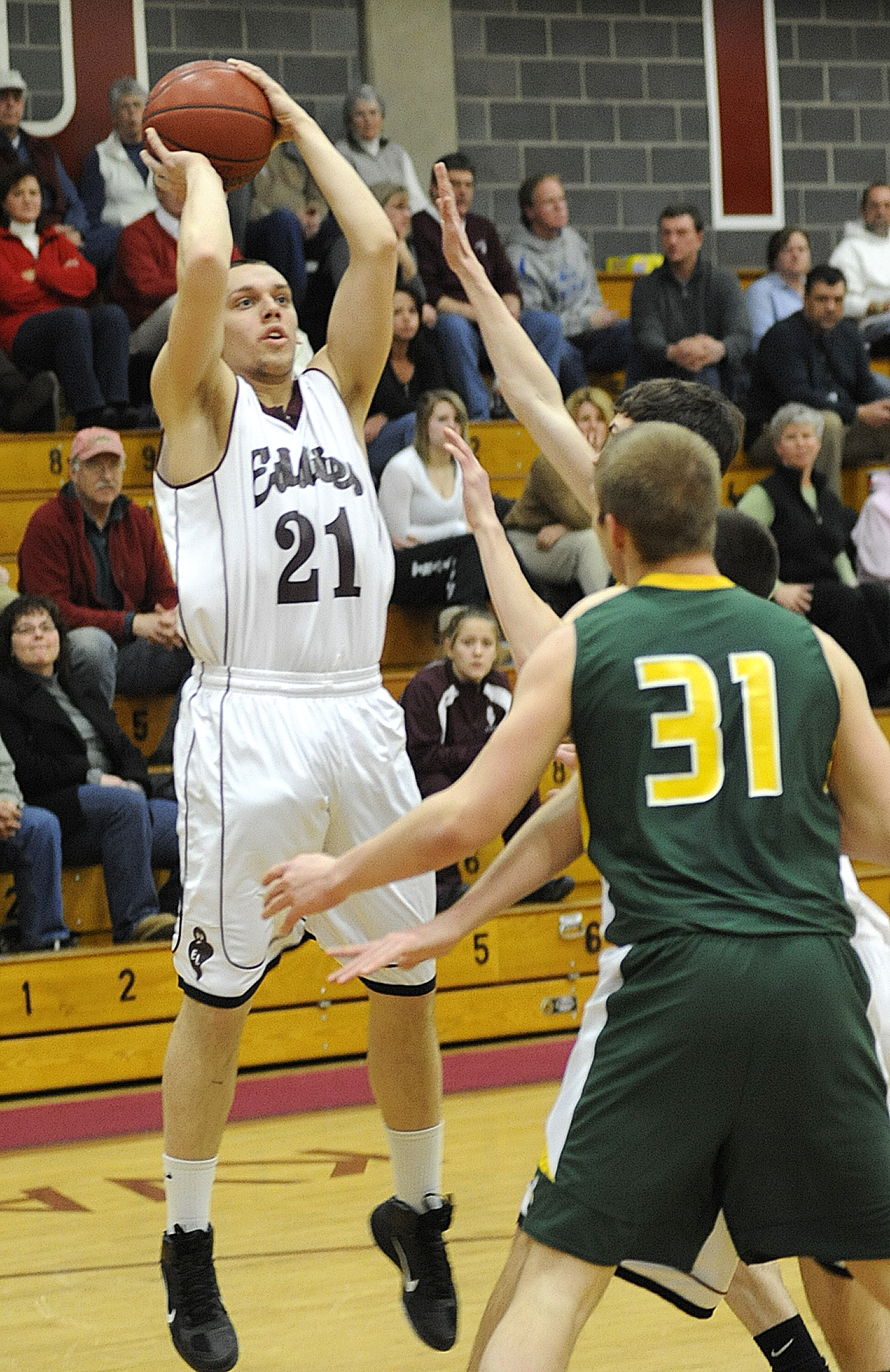 The Red Eddies hit seven 3-pointers with guard Cody Nicholas hitting all three of his buckets in the decisive first half. The senior finished with 11 points.