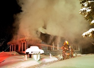Lewiston firefighters went at the burning house with a tanker of their own and called for others from nearby towns. Auburn, Sabattus, Greene and Wales each sent crews to help with the effort.