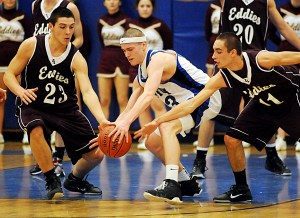 Timmy Mains (five points, five assists, five steals) and Giguere each rained down a 3-pointer in the second period, extending the Eddies’ lead to 32-16 at the half.