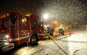 Because of the driving snow, limited visibility and slushy roads at the time of the fire, “conditions made it a little slow getting over,” Therrien said. Still, the first truck arrived on the scene about 6 minutes after the alarm.