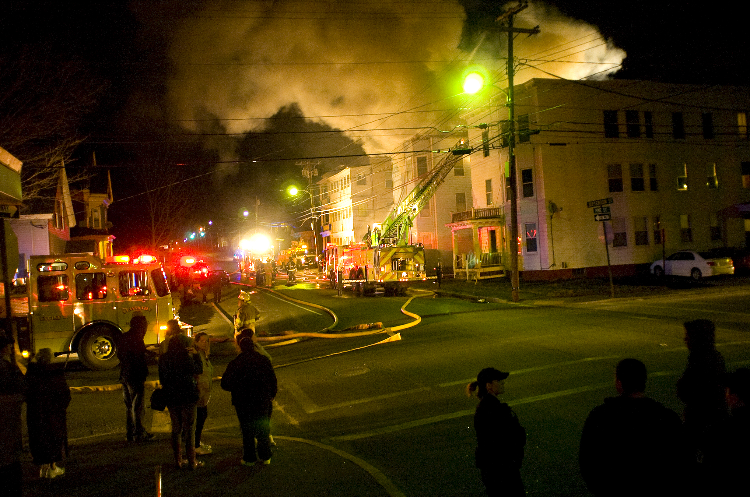 Several emergency vehicles were at the scene, including at least eight firetrucks. Firefighters did not know the cause of the fire or where it started, Ouellette said. An investigation will continue today.