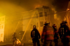 As they watched, firefighters drenched the building’s roof with water from multiple hoses. Sheets of water poured off the building, and icicles formed on nearby powerlines.