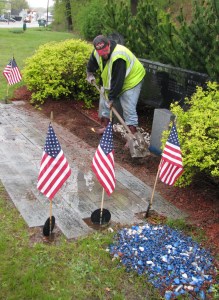 “We’re getting it all shined up and pretty for everybody, but the weather hasn’t been very cooperative,” Blais said, taking a break from cleaning veterans’ memorial stones.