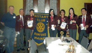 RUMFORD — River Valley Rotary hosted the Group Study Exchange Team from Hong Kong from April 21-25. River Valley Rotary GSE committee members Richard Allen, Bill Gates, Catherine Johnson, Jane Bubar, Becky Hall, Jerry Cohen, Kelly Greene and Joe Sirois of River Valley Rotary and Steve Wight of Bethel Rotary collaborated and organized host families, activities and professional vocation opportunities for an exchange of information. Host families opened up their homes.