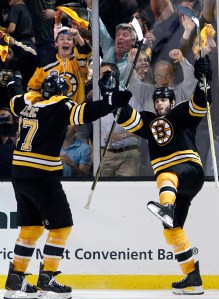 The right wing on Boston’s top line cleanly beat goalie Dwayne Roloson by deflecting a pass across the slot from David Krejci. That set off a loud celebration among Bruins fans, who have waited a long time for a trip to the finals.