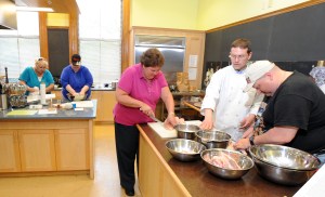 Everyone was pleased to discover how easy the tortillas were to make. The group was also enjoyed watching Liudvinaitis demystify the making of chicken cordon bleu, and was surprised to find such a fancy-sounding meal included in a class about “thrifty” cooking.