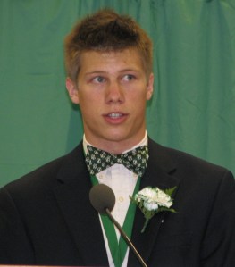 Taking seats between the podium and a large crowd of parents, relatives, friends, professors and school staff, they listened as Class President Andrew Butter Bloomingdale Jr. gave the Graduation Message.