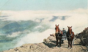 In 1904, the first “Climb to the Clouds” car race was held at the mountain. A Manchester Union Leader editorial lamented, “The whole thing is an unmitigated nuisance. The lives and property of perfectly helpless people have been menaced for no reason other than to provide amusement for total strangers. … If these people think of coming up another year, let ’em stay in jail a couple of days and everyone will be the better for it!”