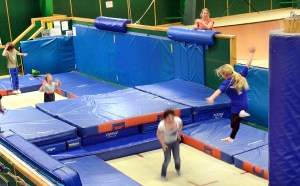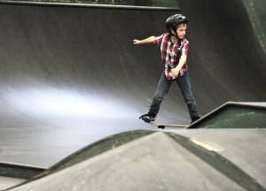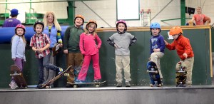 The indoor skatepark has Maines largest indoor skate bowl. Some of the regulars take time out for a group photo. When kids get tired of the physical activities, they can take part in the ongoing arts and crafts. Ben DeBiase of Carrabassett Valley cruises around the state’s largest indoor skate park at the Carrabassett Valley Antigravity Complex. There is always a staff member watching and helping out in the trampoline area. A well equipped weight room is available at the Carrabassett Valley Antigravity Complex Rock Climbing trainer Francois Moretto belays a youngster on the climbing wall at the Carrabassett Valley Antigravity Complex.