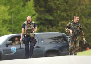 Shortly after 11 a.m., three or four “pops” that sounded like the firing of tear gas canisters could be heard by witnesses at the scene. A short time later, the state police moved their armored tactical vehicle close to the house.