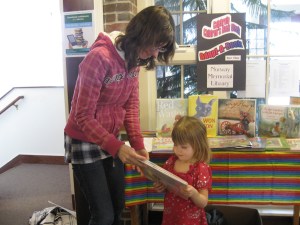 Twenty eight picture books are on display at the Norway Memorial Library and are available to be “adopted” for the children’s collection. Julie Maxim is shown with her daughter Abigail looking at one of the adoptable books. The public is encouraged to purchase a book to honor a child, friend or relative, and a plate with the person’s name will be placed in the front of the chosen book. Books to be adopted include picture book biographies of Amelia Earhart and Dr. George Washington Carver, popular authors such as Jan Brett and Allen Say, favorite book characters such as Fancy Nancy and Olivia, books on topics like honey bees and wolves, and cozy lap-sit read-alouds for the toddler age.