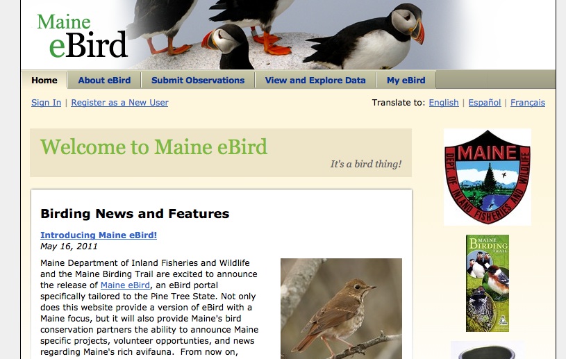 The state Department of Inland Fisheries and Wildlife, the Maine Birding Trail and Cornell University have launched a state-specific version of eBird, where birdwatchers share information about sightings, trips and trends.