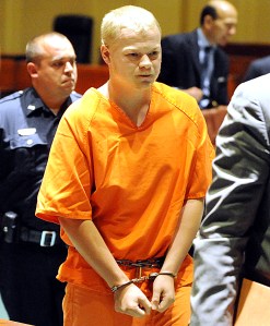 Ryder appeared Tuesday in court in a bright orange jail suit, his ankles shackled, his hands cuffed in front of him.