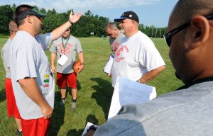 Spend the hottest week of the year living on a quiet private school campus located in an out-of-the-way hamlet in Western Maine chaperoning recently-graduated young men who are also elite athletes. Work morning, noon and early evening preparing them for a charity football game. Spend evenings drawing up game plans, talking football and swapping stories with your peers while helping the young men deal with homesickness, dehydration, iPhone withdrawal and disputes stemming from NCAA Football 12 before an XBox flies out a dorm room window.