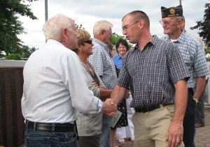 Colby Davis of Canton, a World War II Air Force veteran and former prisoner of war, accepted thanks from Stone-Smart American Legion Post 82 for his financial contribution. He said after the ceremony that his goal is to restore patriotism in the country. He hoped his action would provide others with incentive to be more patriotic, he said.