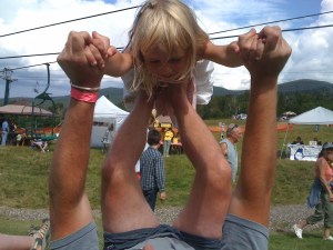 Little girls in sundresses twirled to the music on the stage-side dancing area, while a group of boys on a stretch of the lower ski slope were engrossed in an impromptu Wiffle ball game.