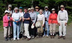 A hike of that length in Maine’s western mountains can be a bit challenging and cautionary flyers were issued to members, all of whom are over 50 years of age: wear hiking boots, bring water, insect repellent and walking sticks, be sure you can do the distance. Seventeen people signed up.