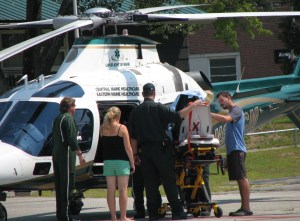 Lt. Micheal Dailey of the Paris Police Department said the boy apparently fell into a camp fire around noontime and burned about 30 percent of his back. The injuries are not believed to be life-threatening, he said. He was taken by PACE ambulance to Stephens Memorial Hospital and then flown to Maine Medical Center in Portland.