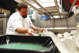 Payne’s making a living in this position — it’s hard, but in this economy, he reasons, what’s easy? But he doesn’t plan on washing dishes forever. He’s got a passion for food service, and he hopes to move into preparation, and on to culinary arts.