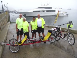 As long as a small car and weighing about 80 pounds without riders or equipment, the bike wasn’t always fast or easy to power up mountains. The group encountered all types of weather, mechanical problems, bumps, bruises, dog bites, cars and other challenges.
