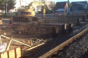 Cement for the train platform is being poured and discussions regarding the location of a start-up train station are in progress.