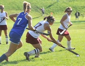 Courtney Pelletier finally had enough. Driving through the middle, Pelletier — normally a left-side player — crossed with the ball to the right, and then back across the field to the middle. Her efforts spawned a three shot outburst from the left post that ultimately resulted in the Red Eddies’ first goal. Three minutes later, she then played her position perfectly at the left post, redirecting a pass from Jordan Tate past a diving Ravon Palmer, netting the game-winner for Edward Little in a tightly-contested 3-1 victory over the Blue Devils at Sherwood Heights.